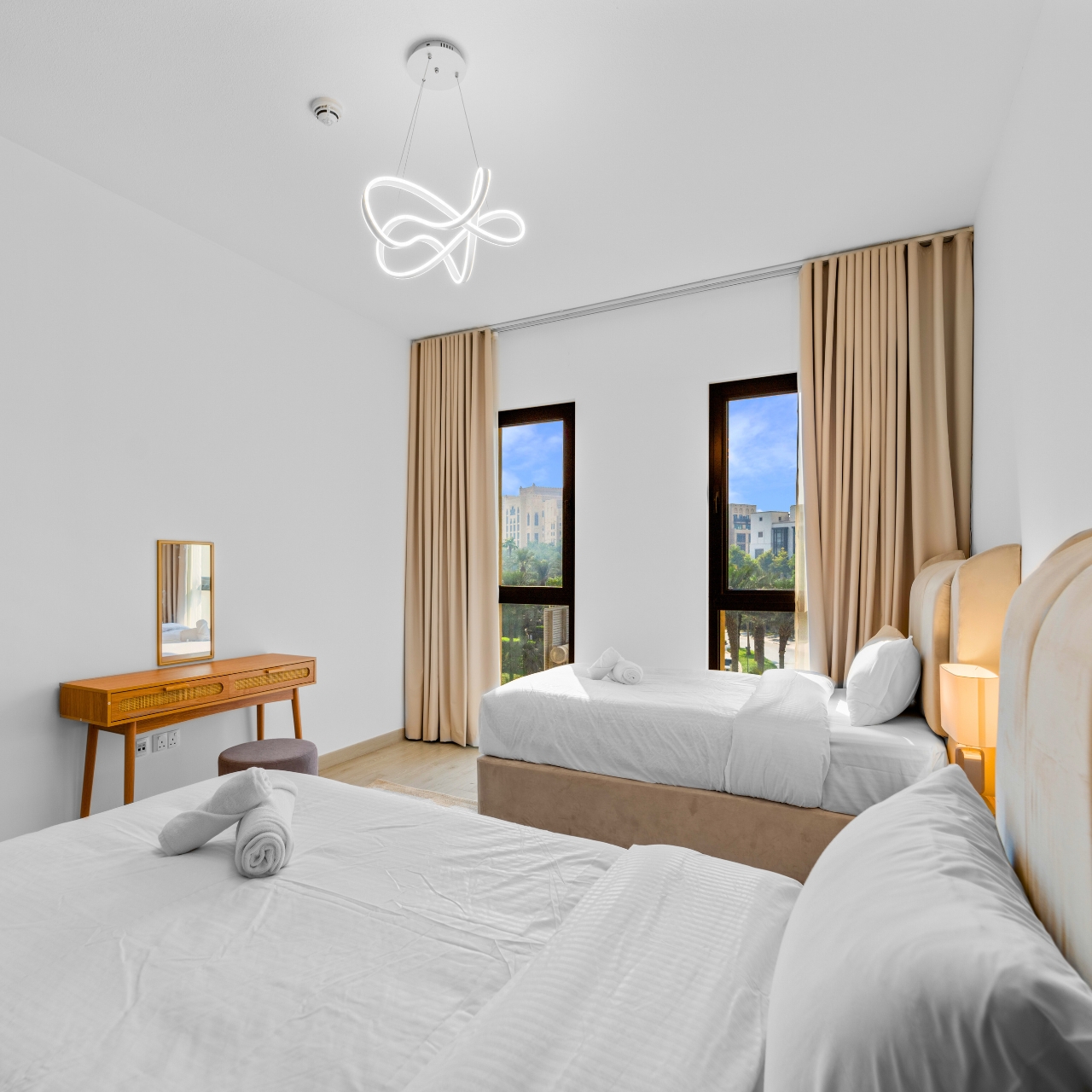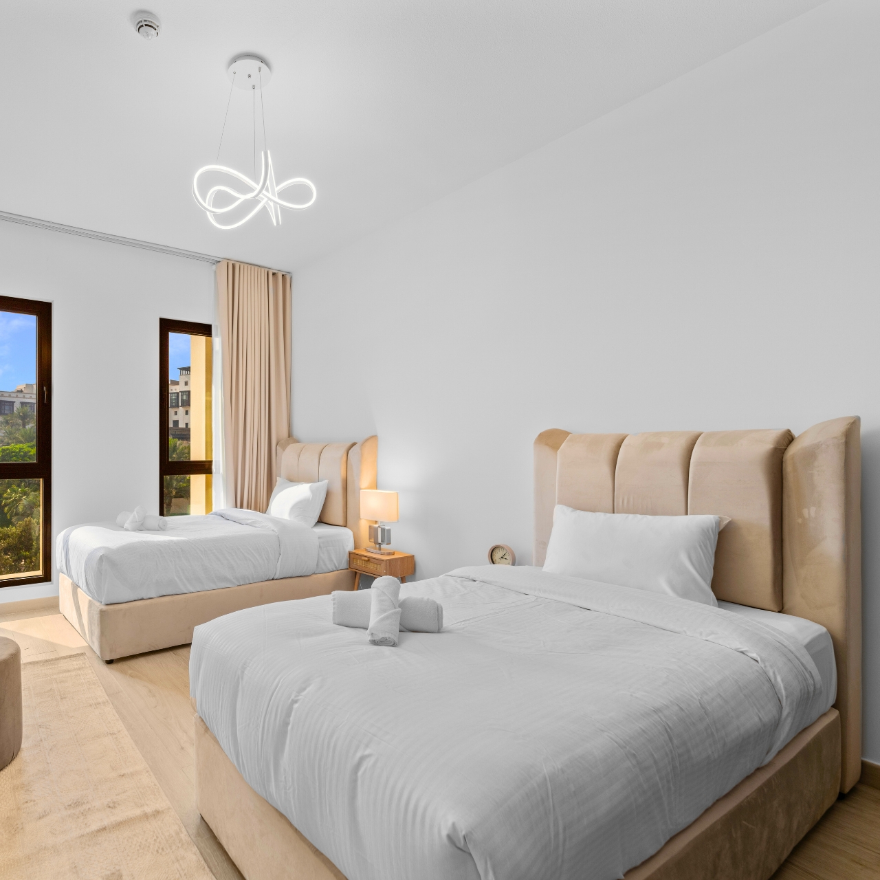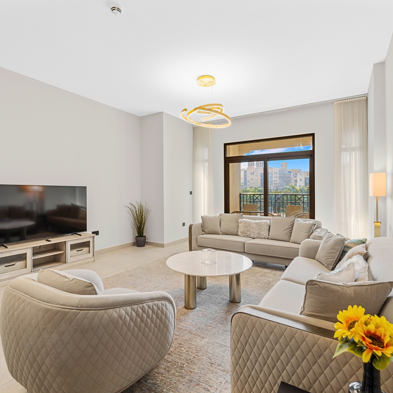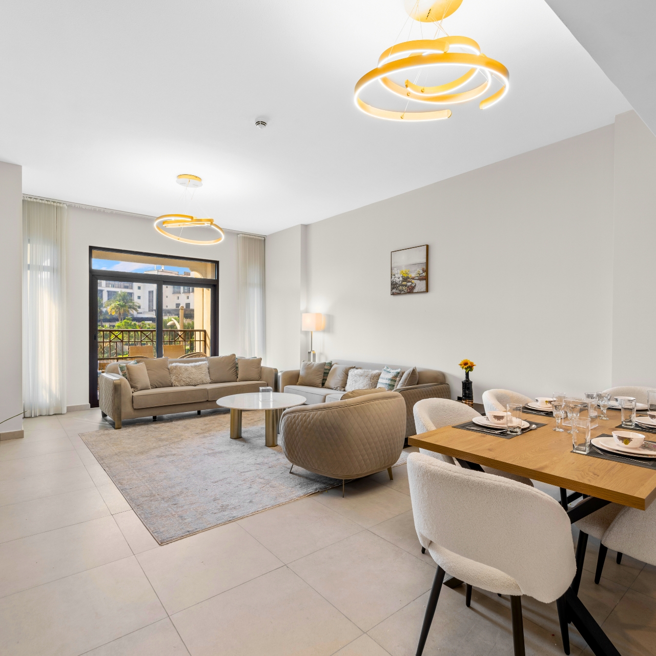 Step into a world of elegance and tranquility in this spacious 2-bedroom apartment in Lamtara 3, nestled within the prestigious Madinat Jumeirah Living community. Designed to reflect traditional Arabian architecture.