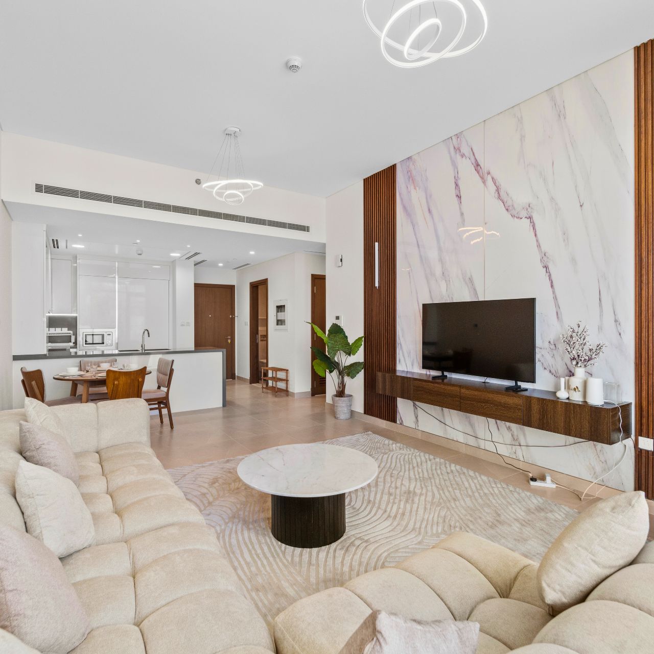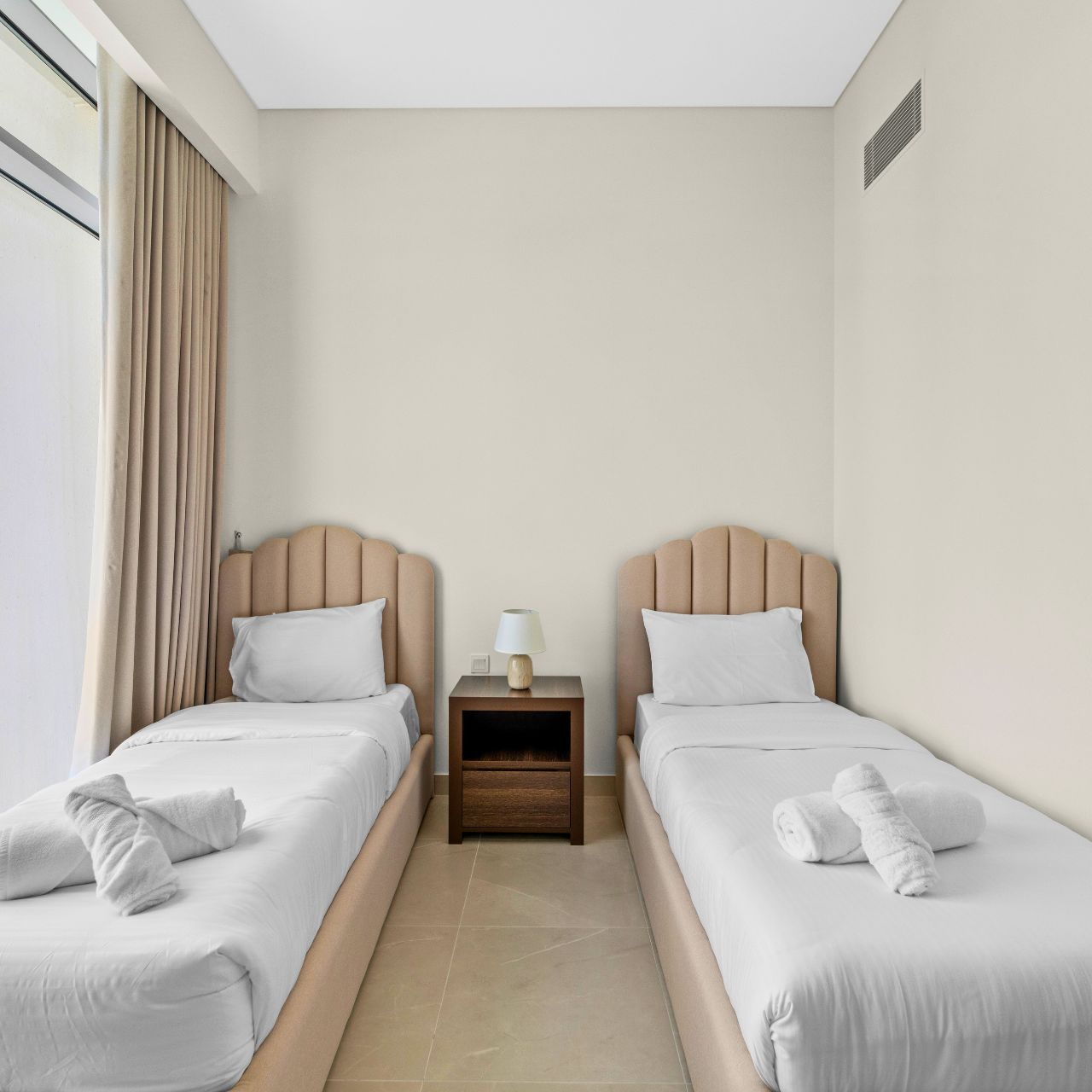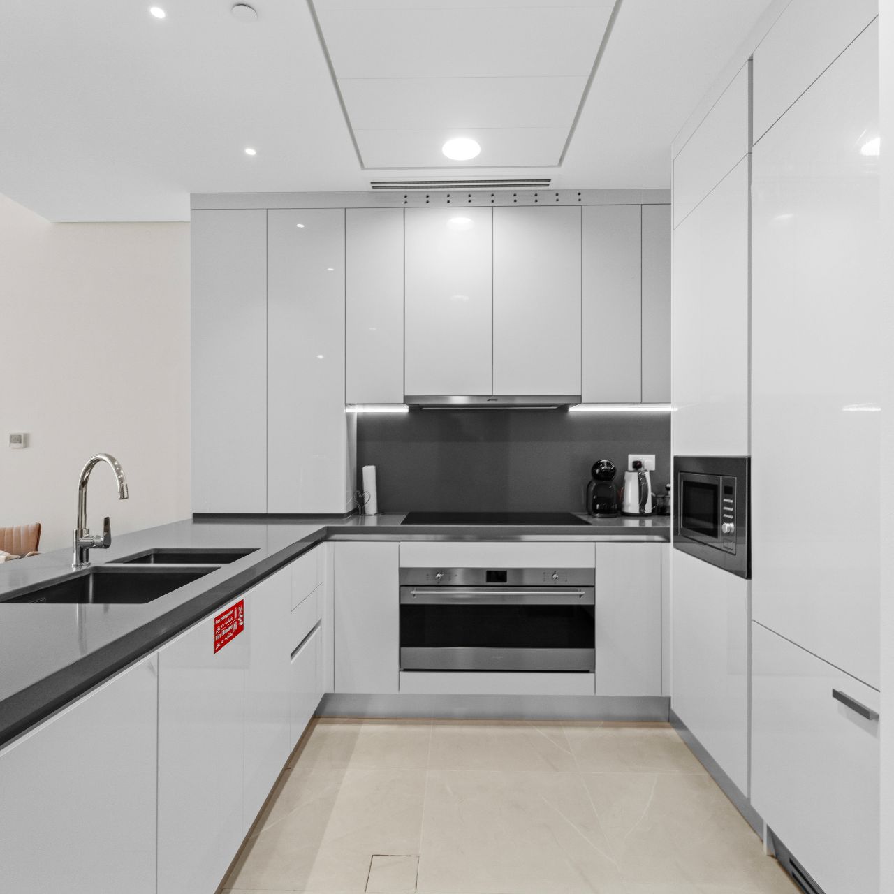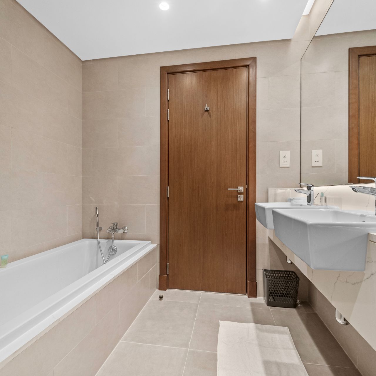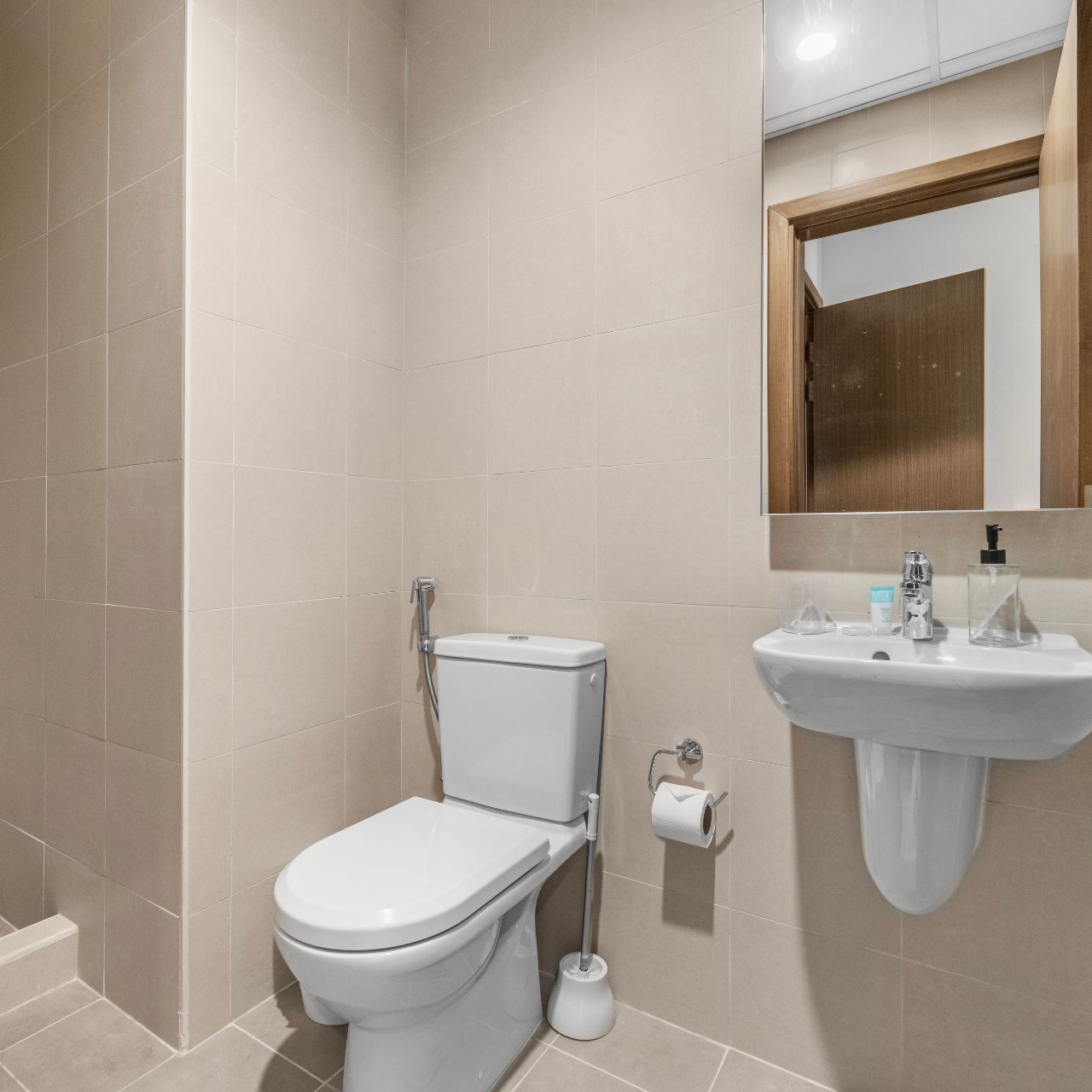 The two large bedrooms are thoughtfully designed with built-in wardrobes, en-suite bathrooms.